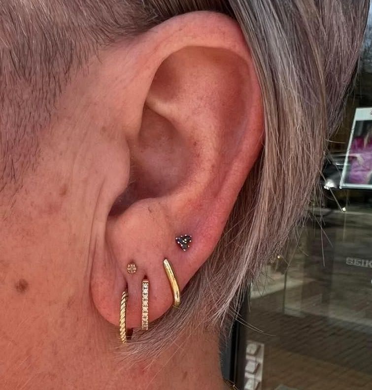 We zetten oorbellen alleen in de oorlel, niet in het kraakbeen. Dit is per persoon verschillend en kan meestal t/m het derde of vierde gaatje geprikt worden.